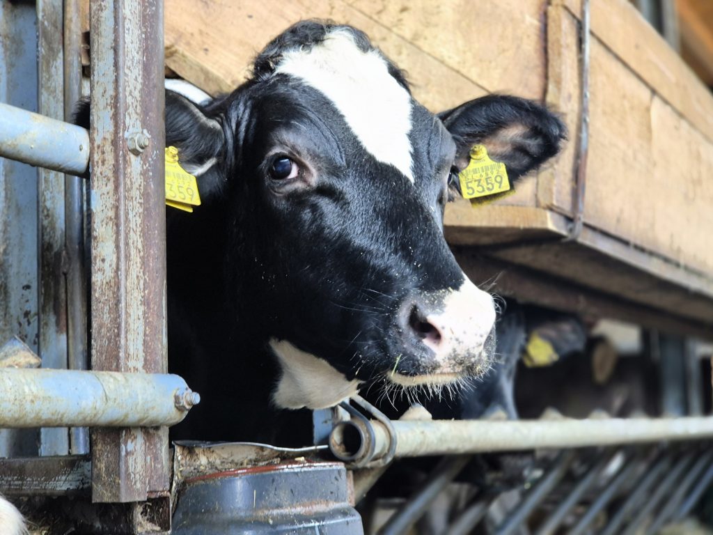 Molža poteka v molzišču side by side, ki omogoča sočasno molžo šestih krav.
